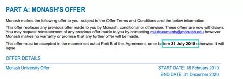 *蒙纳士大学的商科课程每年满位较快,持商科录取通知书的小朋友需要留意offer lapse date
