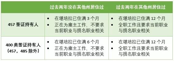 如果过去两年内有在其他州生活过,申请人需要在堪培拉居住满12个月并且有一份与提名职业相关的真实Job Offer。